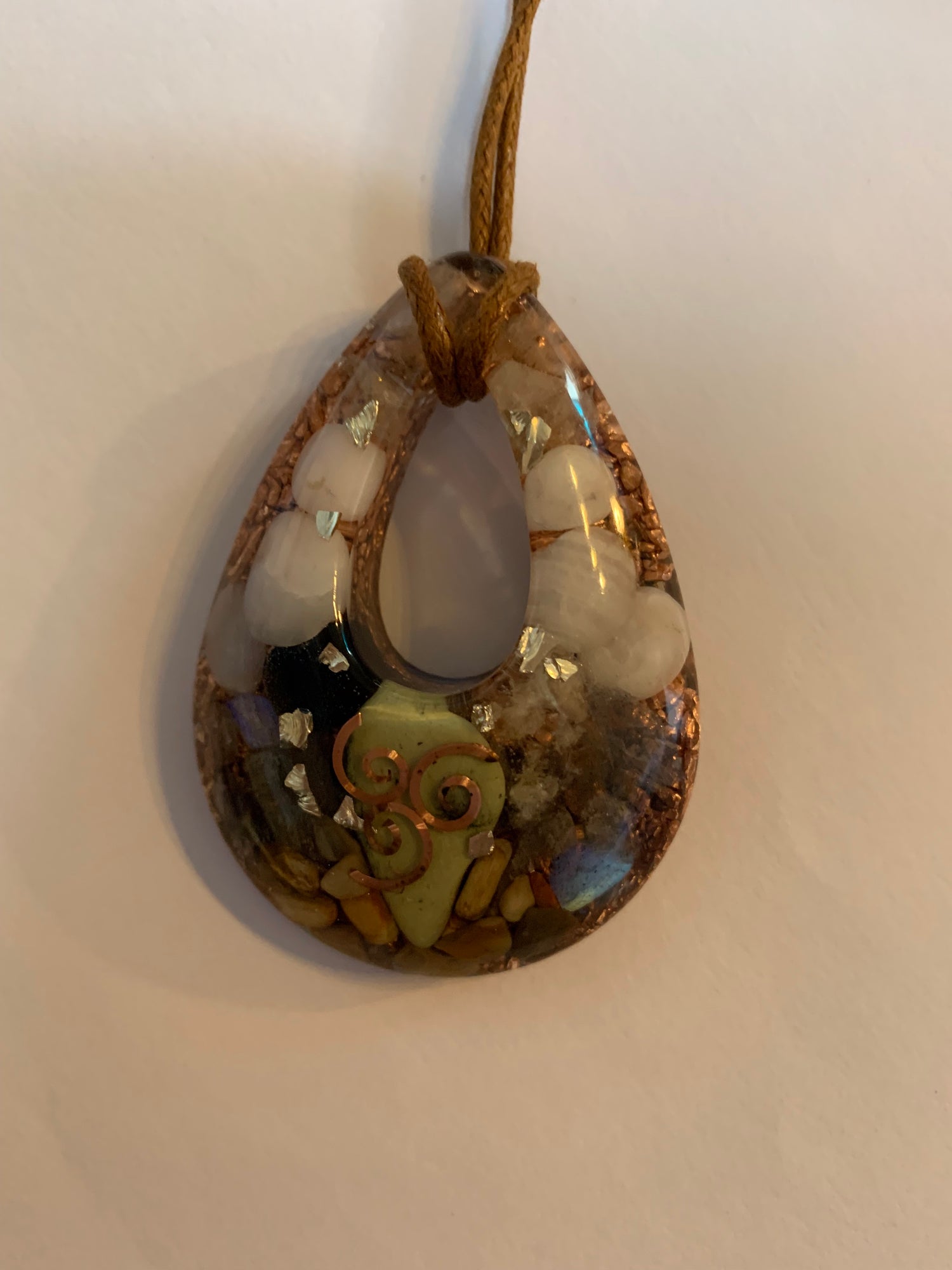 vastgehouden door de combinatie van giethars en edelstenen. Deze combinatie wordt versterkt door er metalen aan toe te voegen. Door een orgonite in lagen op te bouwen creëer je dat de negatieve energieën door de lagen heen gezuiverd en getransformeerd worden.