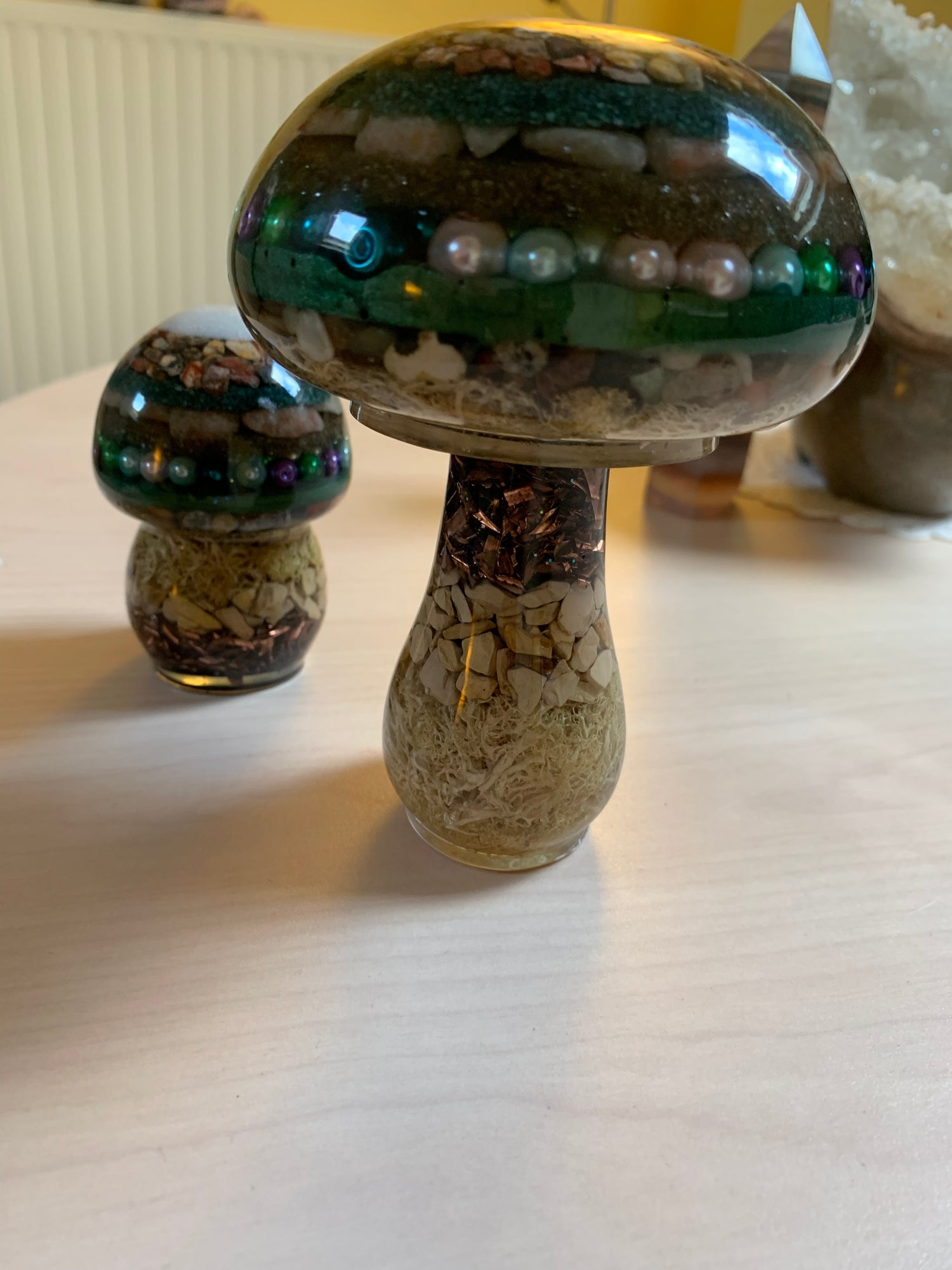 vastgehouden door de combinatie van giethars en edelstenen. Deze combinatie wordt versterkt door er metalen aan toe te voegen. Door een orgonite in lagen op te bouwen creëer je dat de negatieve energieën door de lagen heen gezuiverd en getransformeerd worden.