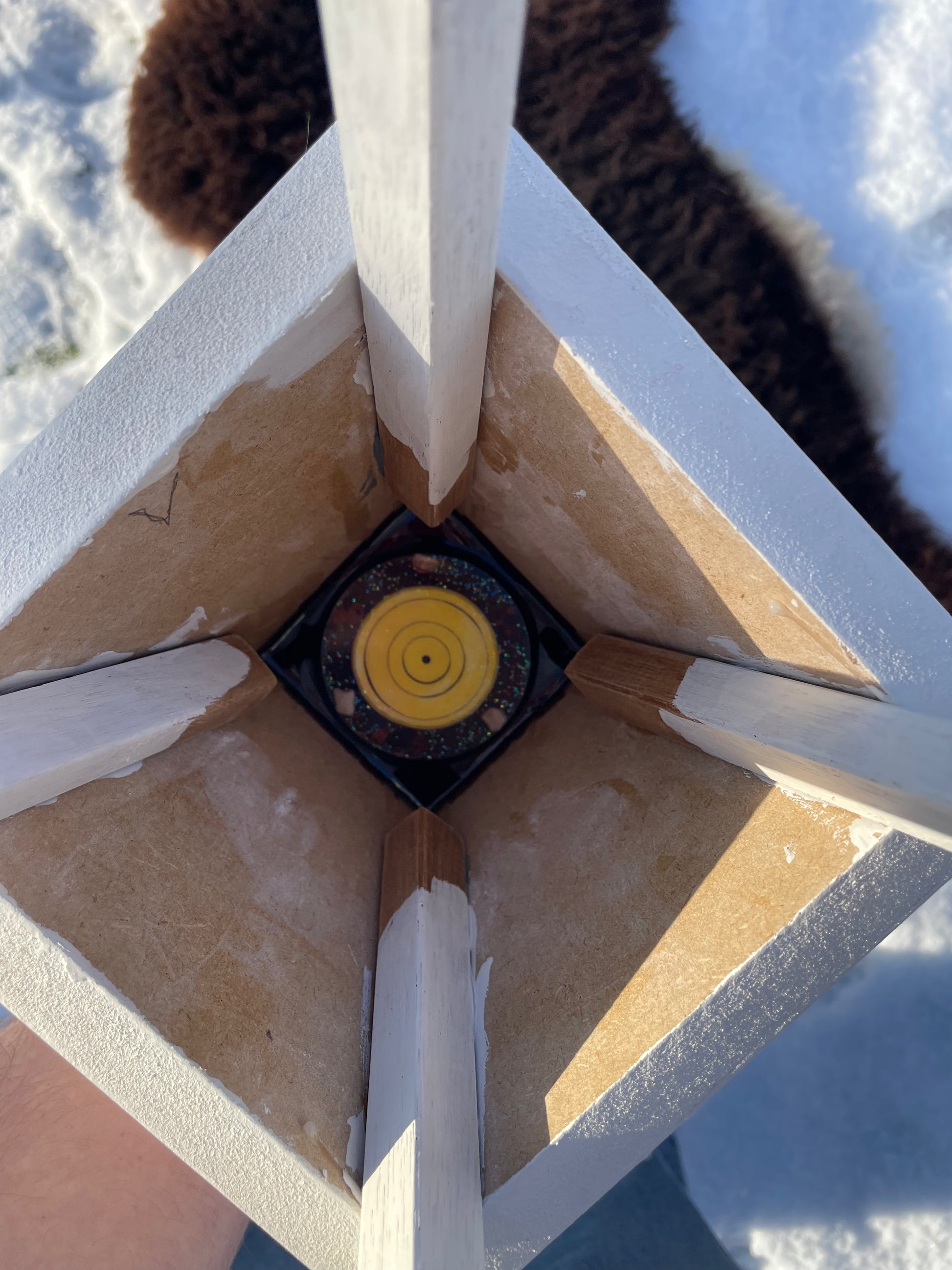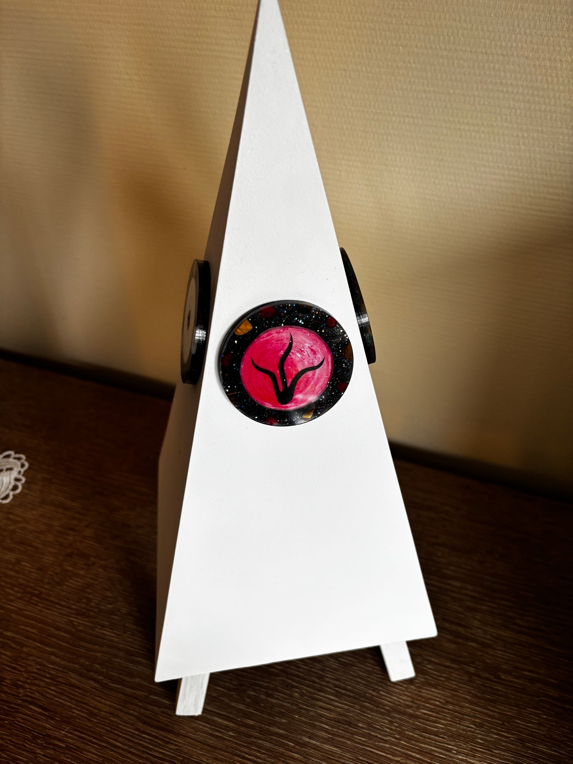 De Vitalizer is een verfijnde, handgemaakte witte houten piramide in Russische stijl, speciaal ontworpen om een gevoel van openheid, alchemie, en vitaliteit te stimuleren. Dit tafelmodel brengt de energie van de lente in huis en dient als een krachtig instrument voor het versterken van levensenergie en innerlijke balans.