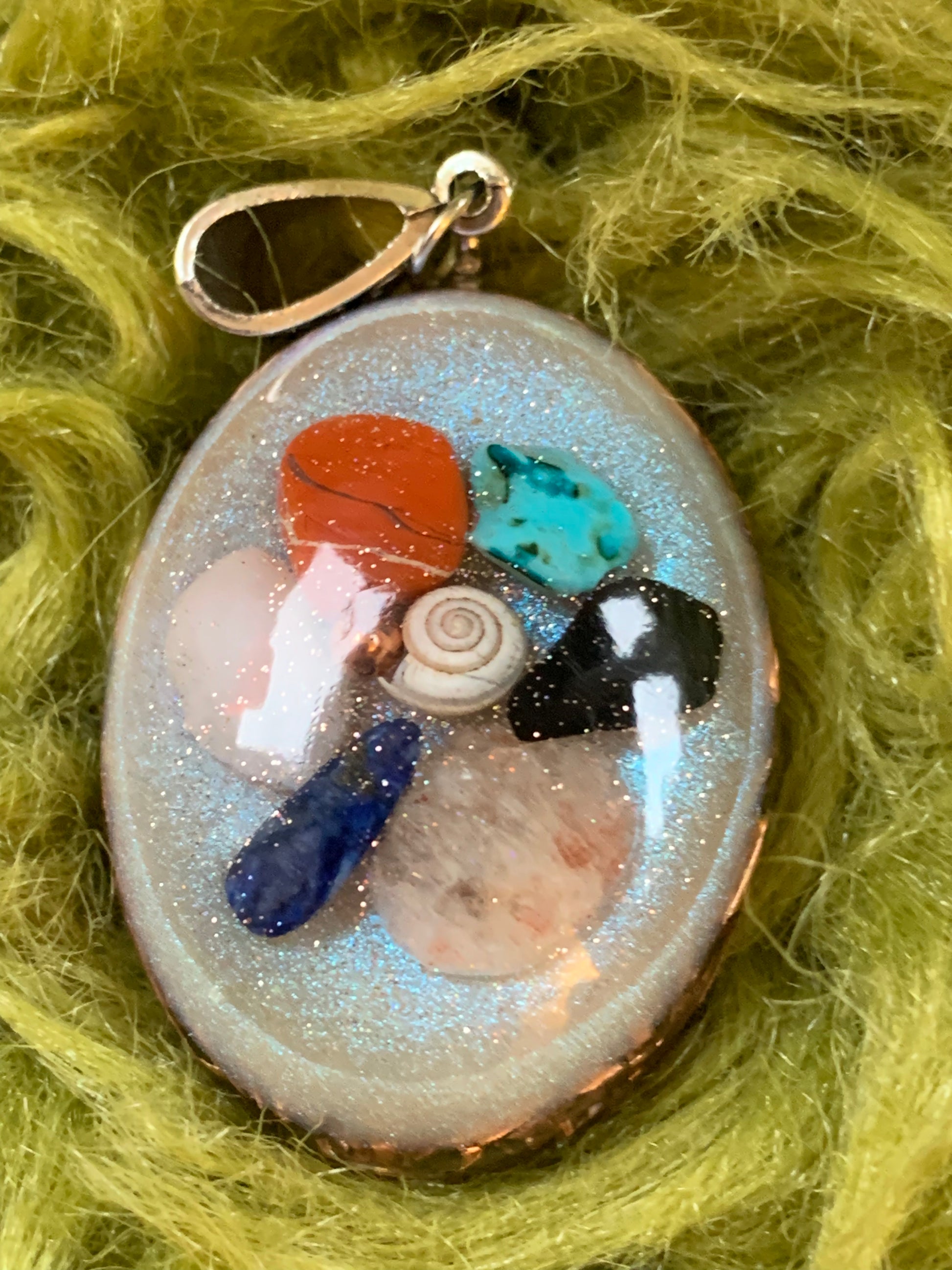 Dit orgonite juweel is ontworpen om balans, harmonie en bescherming in je leven te brengen. De zorgvuldig gekozen materialen versterken elkaar en creëren een krachtige energie die je aura zuivert en stabiliseert. Het juweel bevordert innerlijke rust en helpt negatieve invloeden af te weren. Een elegant sieraad dat zowel energetisch als esthetisch een verrijking is.