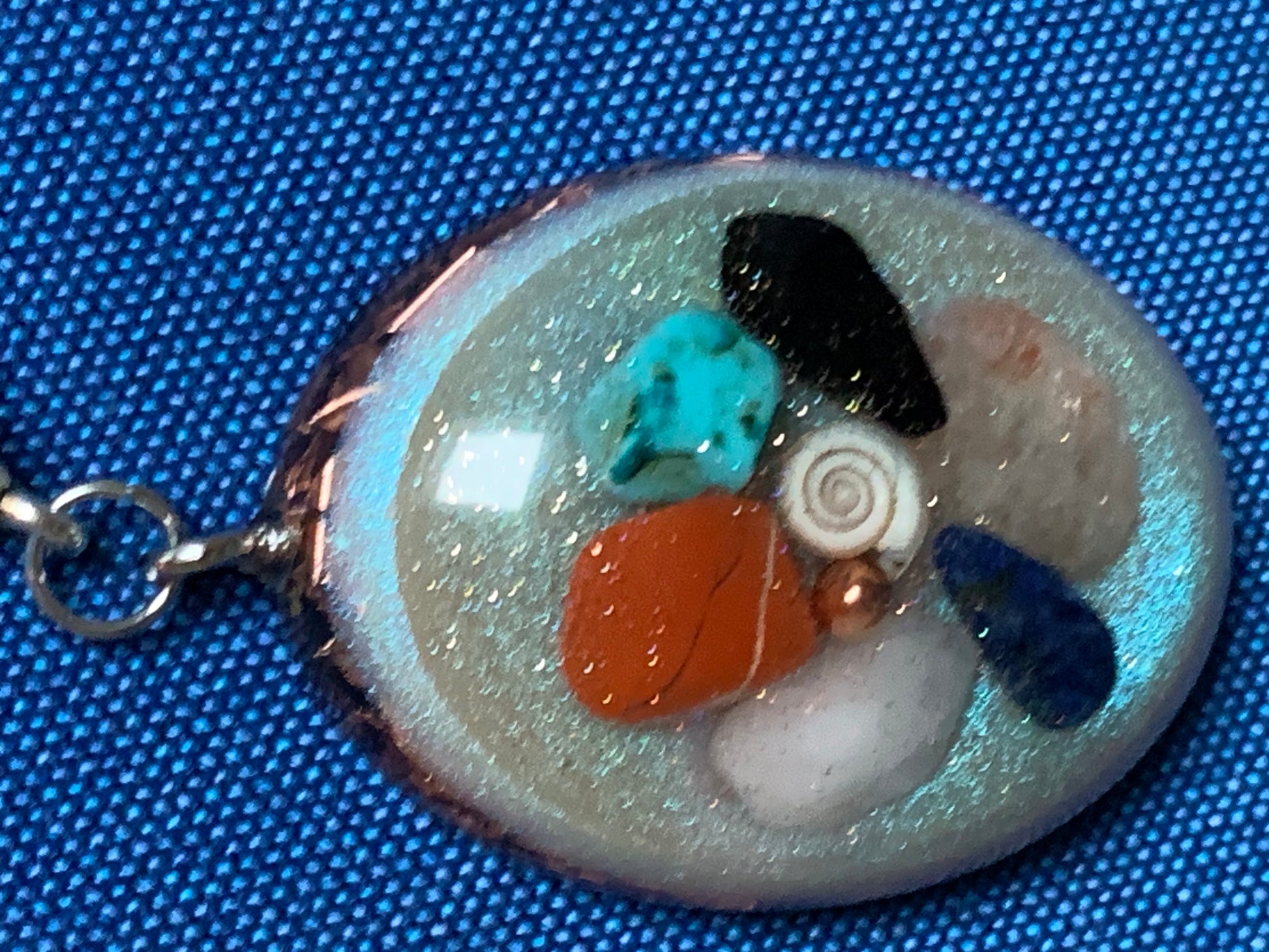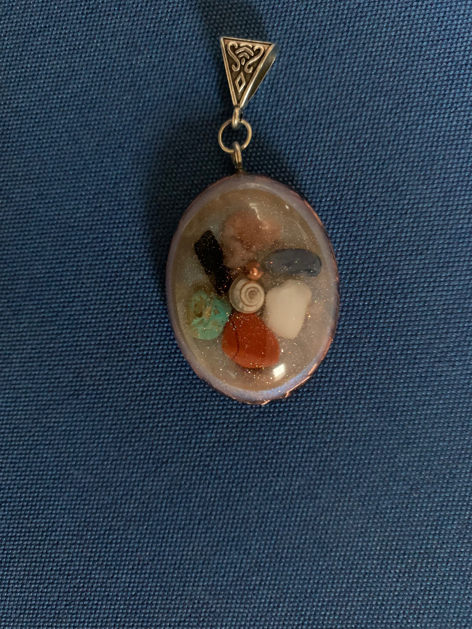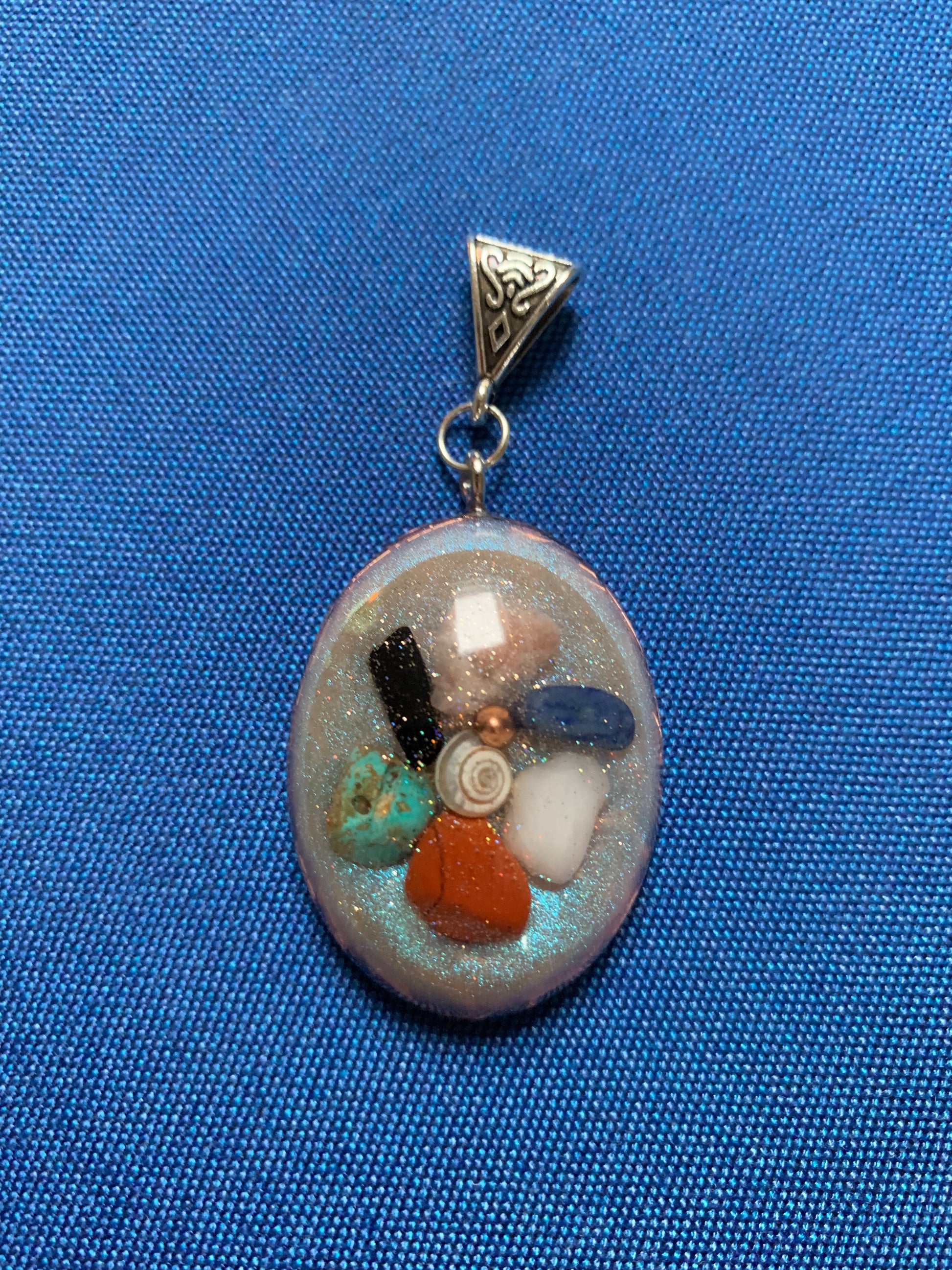 Deze orgonite hanger is ontworpen met de intentie van harmonie, balans en bescherming. Gemaakt van krachtige mineralen en metalen, helpt deze hanger om negatieve energieën te neutraliseren en een kalmerende vibratie te verspreiden. Draag deze hanger om je aura te versterken, je energiecentra in balans te brengen en een gevoel van innerlijke rust te bevorderen. Perfect voor dagelijkse energetische bescherming en het creëren van een harmonieuze omgeving.