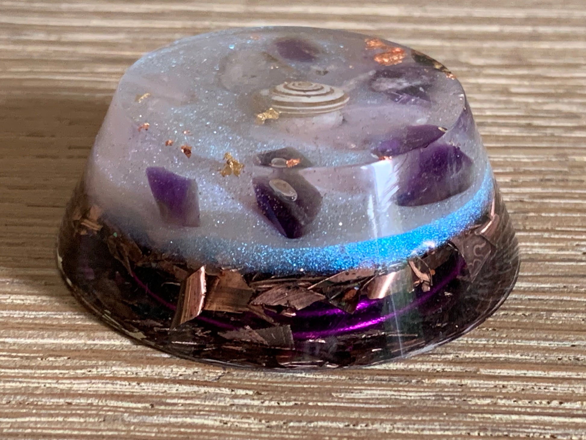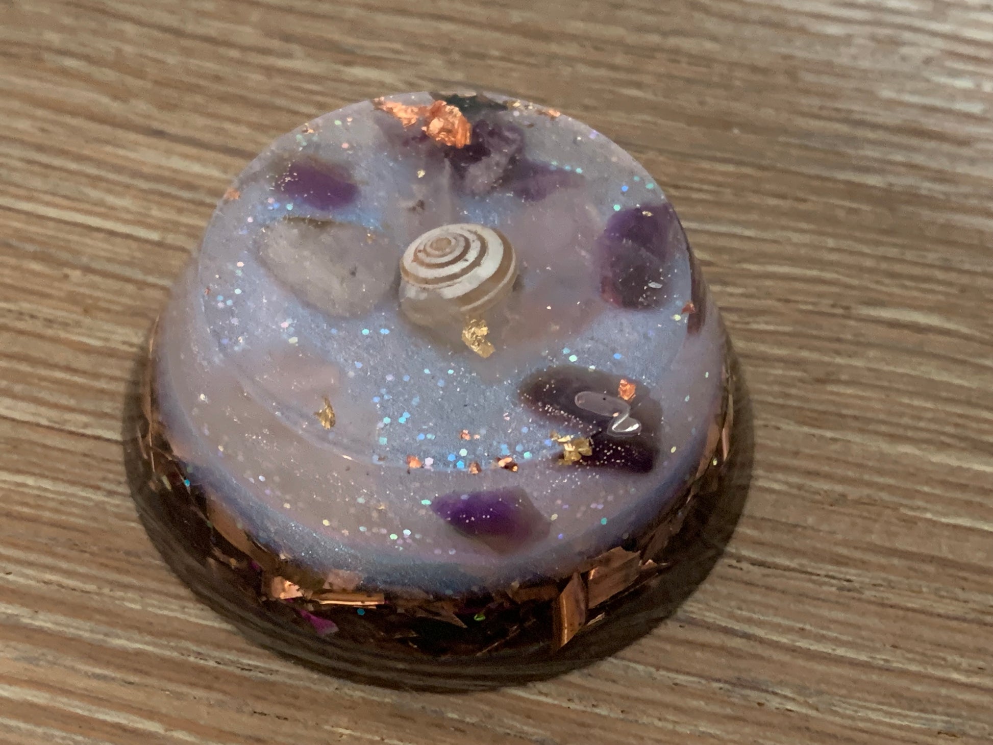 Maak kennis met deze kleine maar krachtige Towerbuster Orgonite: de Gouden Driehoek Beschermer. Vervaardigd met de krachtige combinatie van amethist, bergkristal en rozenkwarts, toermalijnkwarts en shungite, dient het als een krachtig schild om je te beschermen tegen negatieve energieën en elektromagnetische straling. Compact maar effectief, het is je betrouwbare metgezel voor het creëren van een harmonieuze en gebalanceerde omgeving, waar je ook gaat. Laat de Gouden Driehoek Beschermer je trouwe bondgenoot zijn in de zoektocht naar positieve energie en sereniteit.