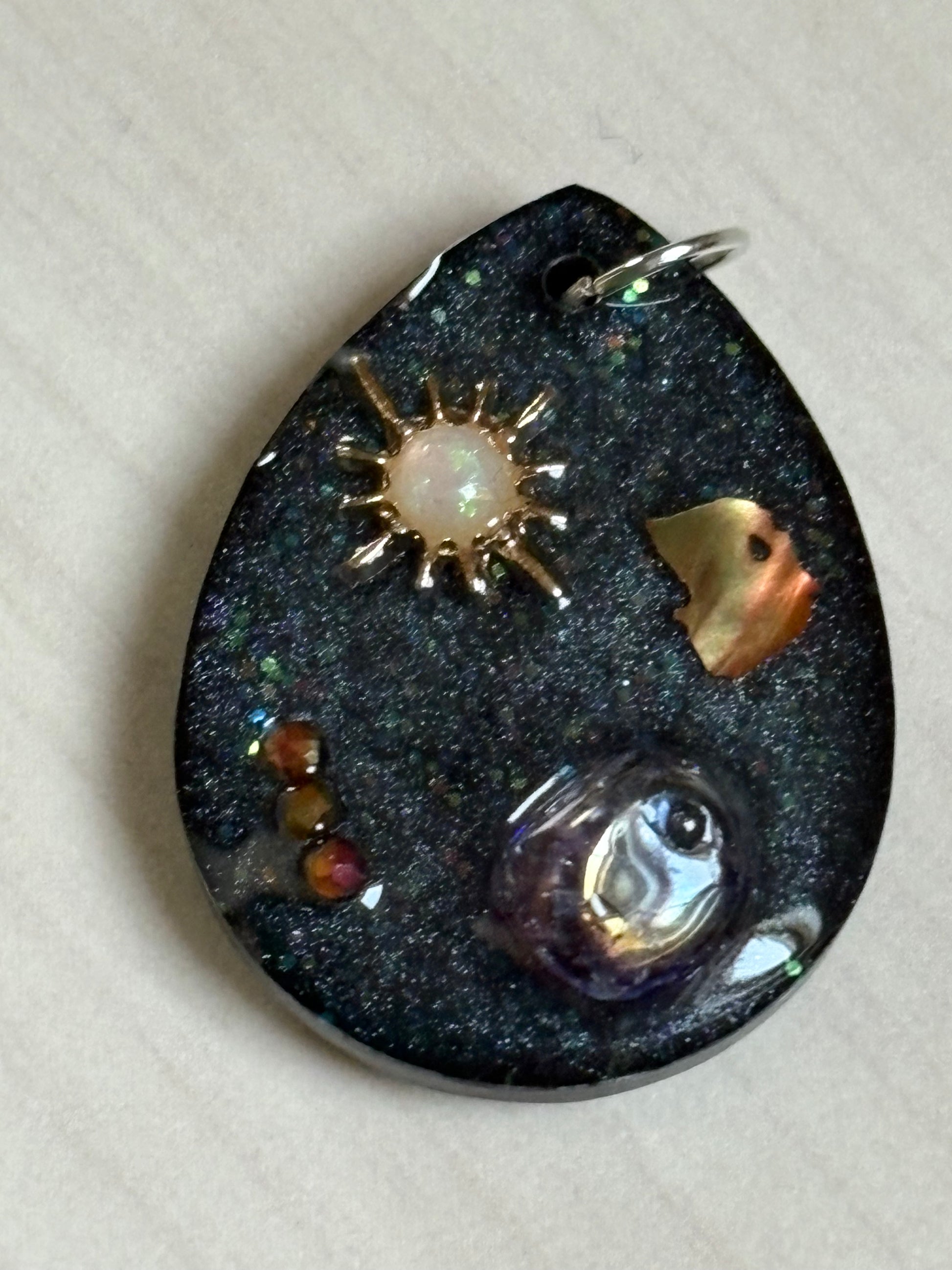 Elk juweel is een unieke creatie die niet alleen jouw uitstraling verrijkt, maar ook je energieveld ondersteunt. Draag het dagelijks als jouw persoonlijke bron van kracht, balans en bescherming. Deze is aangevuld met titanium kwarts, abalone shell en aqua aura.