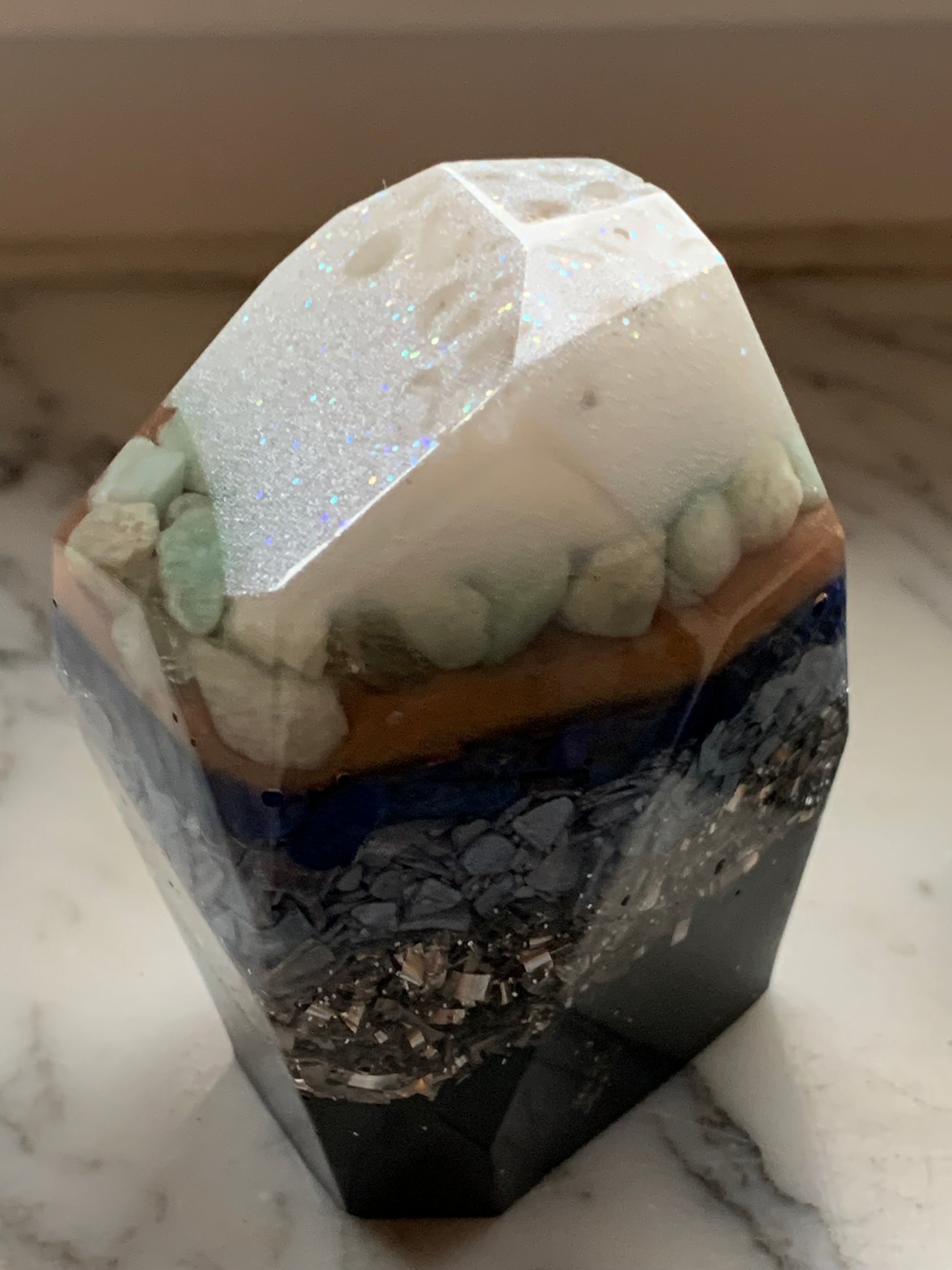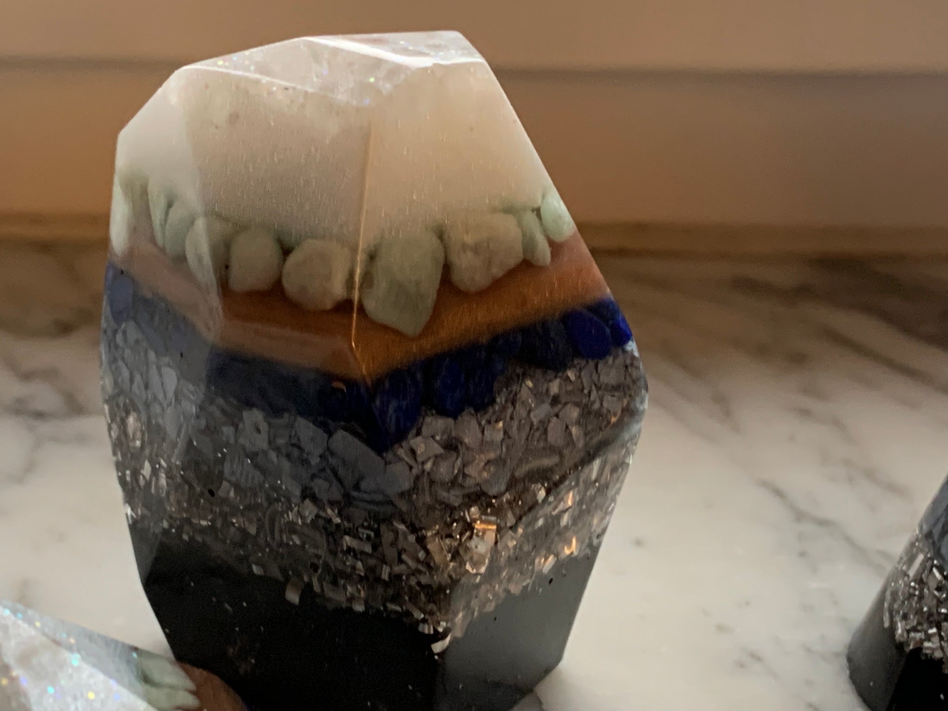 Dit trio vormt een krachtige synergie, waardoor een orgonite ontstaat die niet alleen de ruimte verfraait, maar ook positieve energie stimuleert en negatieve invloeden neutraliseert.